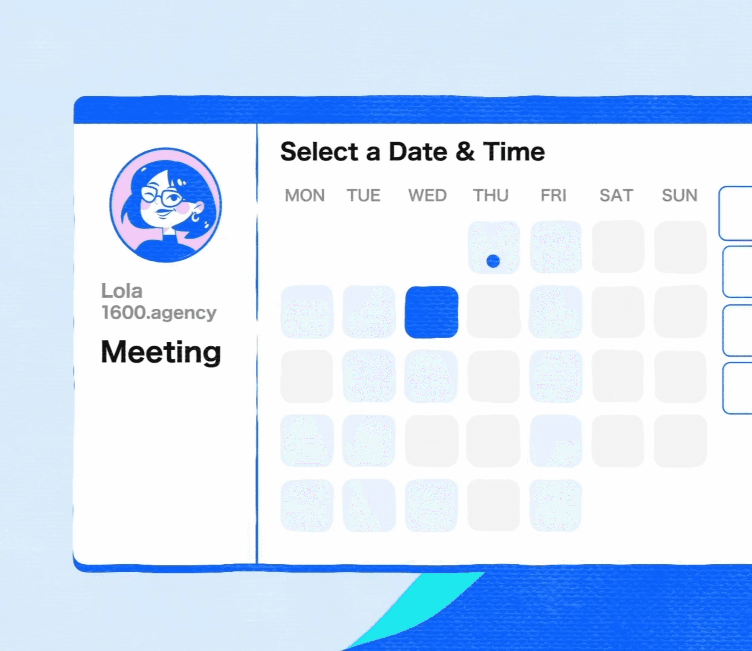 Comme Lola choisissez facilement quand est-ce que vos clients et prospects peuvent vous contacter, fini les appels de dernières minutes !